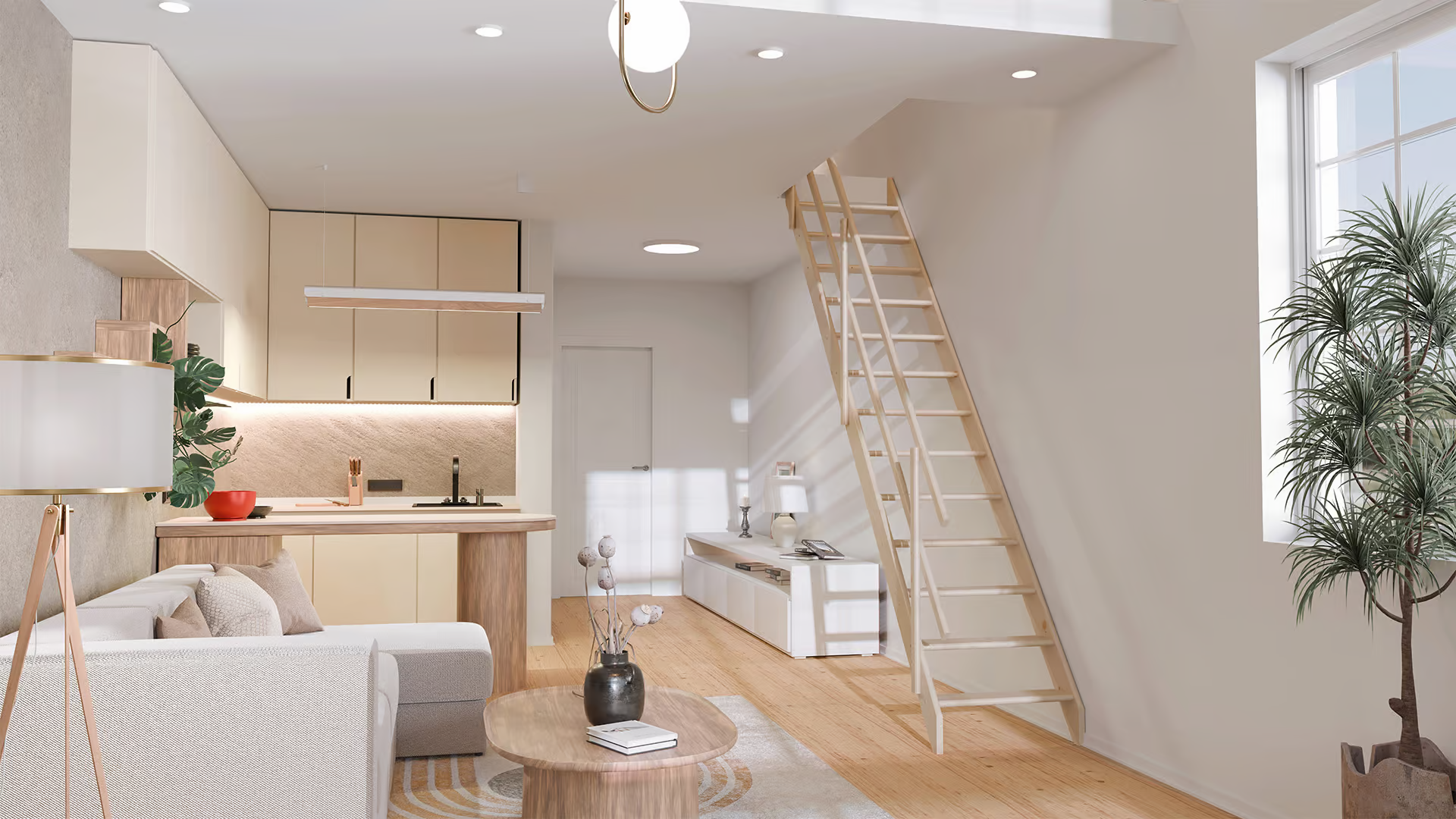 Terwijl de ladder van een mezzanine een helling heeft tussen 60 en 70 graden, varieert de helling van een conventionele trap tussen 25 en 40 graden. De Cottage molenaarstrap bevindt zich tussen beide met zijn helling van 51,34 graden. Het is daarom comfortabeler om op en neer te lopen dan een mezzanine ladder en biedt tegelijkertijd aanzienlijke ruimtebesparing.