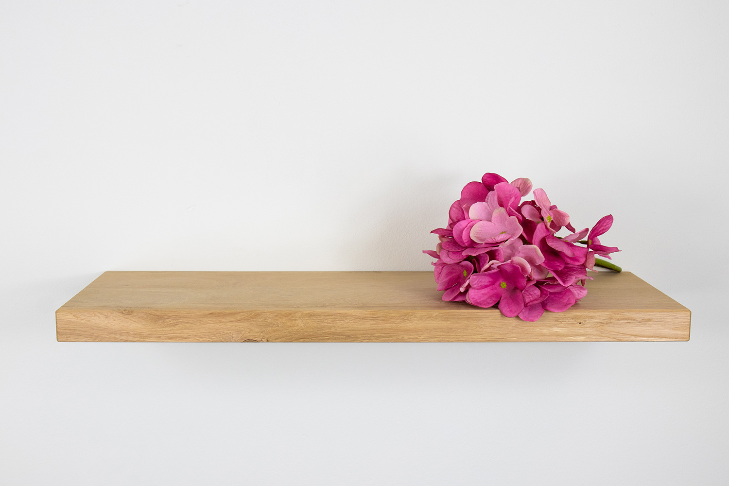 De zwevende wandplank is voorzien van een warme kleur, nature olie. De wandplank heeft een natuurlijke en matte look. De wandplank eiken is van hoogwaardig eikenhout. De kwaliteit en de autheniciteit van het eikenhout is goed te zien in de structuur en uitstraling van de eikenhouten wandplank.